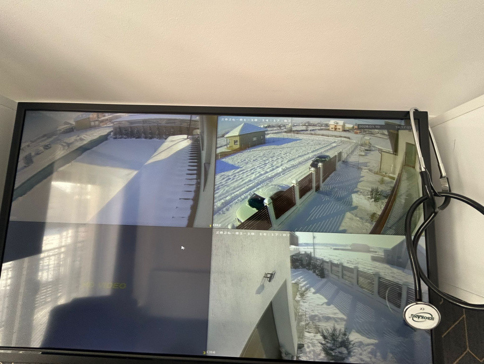 Dispune de garaj cu telecomanda cu o curte spatioasa , supraveghere video si toata proprietatea este imprajmuita .